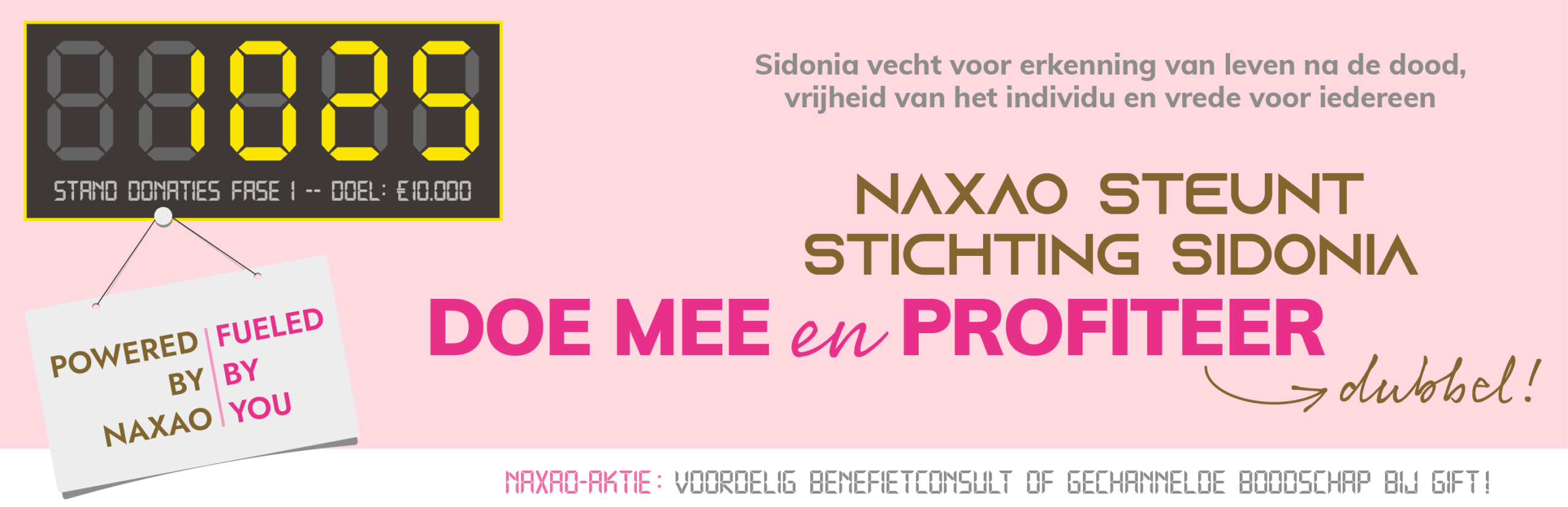 Met z’n tweeën werken we het op den duur niet bol. Heb jij een uurtje over en ben je goed in fondswerving, financiën, legal, (web)design, SEO, tekstschrijven, redigeren, administratie, vertalen, DTP, kado’s versturen of iets anders? Daar zijn we blij mee! Al is het maar om eens te sparren. Stuur een berichtje naar info@naxao.eu. Heb je een bedrijf en wil je ons sponsoren? Of wil je zelf een inzamelaktie optuigen voor Sidonia? Dan ben jij onze held! En deze pagina delen met jouw netwerk, is ook een grote steun.